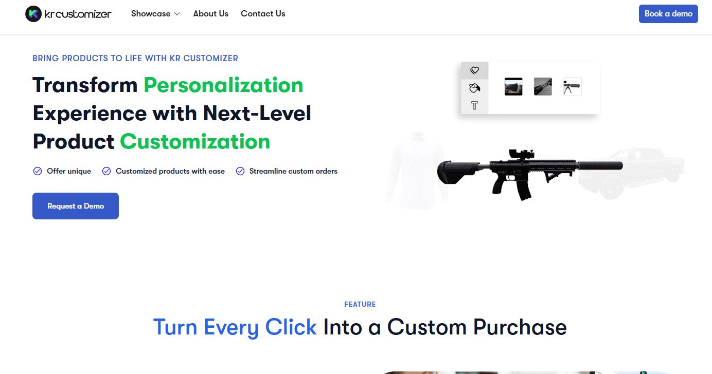 KR Customizer is a powerful ecommerce product customization platform that enables online businesses to offer customers a seamless and engaging personalized shopping experience. With real-time previews and intuitive design tools, shoppers can easily customize products such as apparel, gifts, jewelry, and even automotive accessories, viewing their unique designs instantly before making a purchase. The system streamlines operations by generating print-ready files, integrating with popular print-on-demand and ecommerce platforms, and automating much of the sales workflow—reducing errors and increasing operational efficiency. KR Customizer’s quick setup process requires no coding, allowing retailers to start offering custom products in minutes. By transforming ordinary products into personalized purchases, the software has helped clients increase engagement, boost sales, and foster repeat business, with many users reporting fewer returns and a more enjoyable buying experience for their customers.